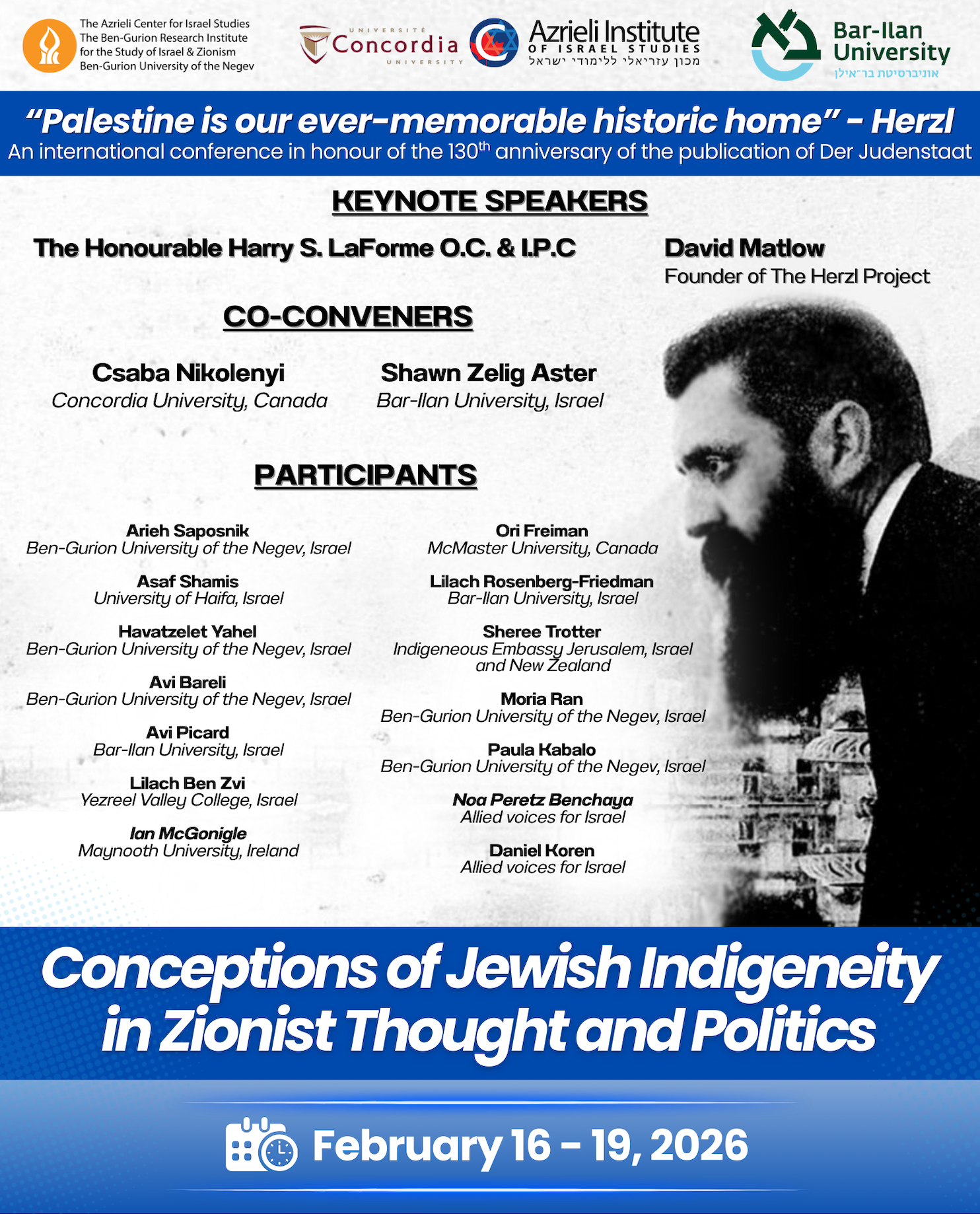 On February 16-18, top international scholars explored “Conceptions of Jewish Indigeneity in Zionist Thought and Politics” in a conference co-sponsored by Concordia University's Azrieli Institute of Israel Studies, Bar-Ilan University, and the Azrieli Center for Israel Studies at Ben Gurion University of the Negev. Speakers from Israel, New Zealand, Ireland and across Canada unpacked this nuanced topic, drawing from fields as diverse as history, archaeology, religion, indigenous studies, and public diplomacy. They provided valuable insight on what is truly a crucial topic of our times.